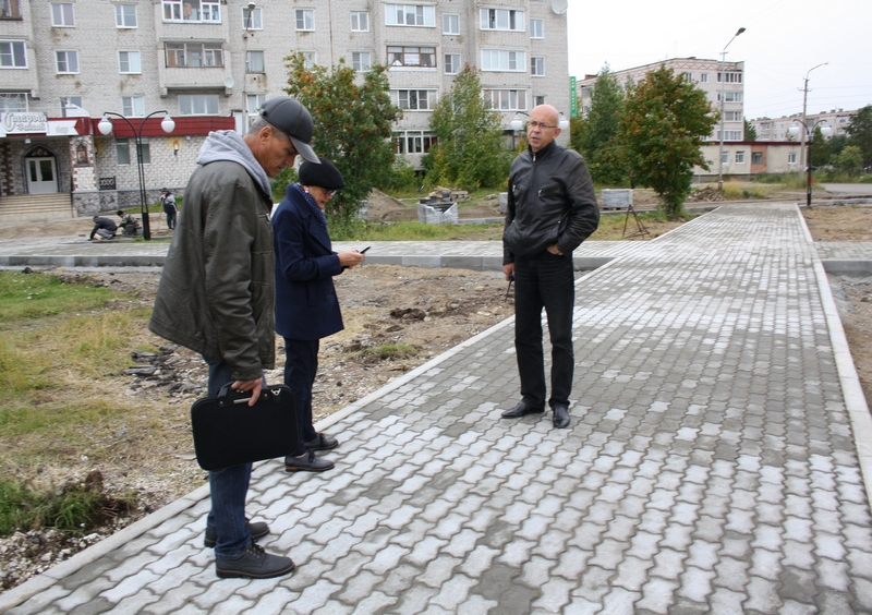 Комиссия в составе работников отдела благоустройства, дорожного хозяйства, промышленности администрации муниципалитета и Управления капитального строительства оценила качество и приняла к оплате работы по обустройству дорожек из тротуарной плитки.