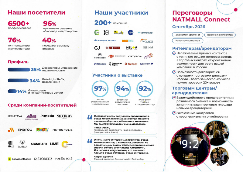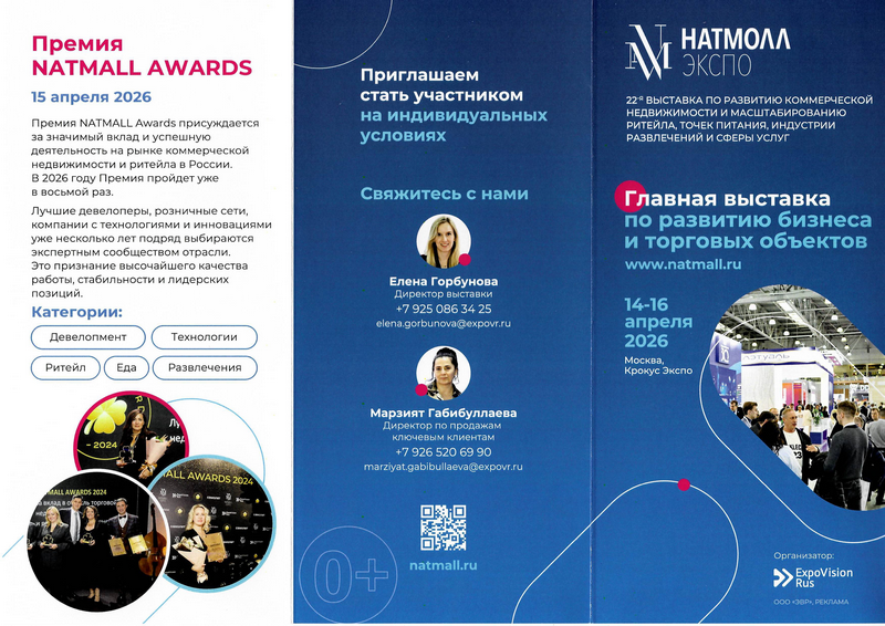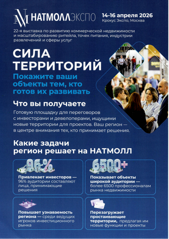 Министерство сельского хозяйства и торговли Республики Коми направляет официальное приглашение от ООО «ЭкспоВижнРусь» и информационные материалы, касающиеся участия в 22-й Международной выставке по коммерческой недвижимости, ритейлу, точкам питания, индустрии развлечений и сферы услуг - НАТМОЛЛ 2026 (далее – выставка, мероприятие), которая состоится 14-16 апреля 2026 года в Москве на территории ВДНХ («Крокус Экспо»).
